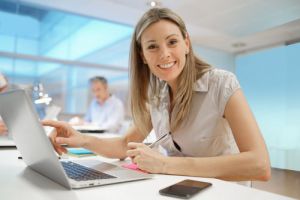 With computer, laptop, tablet or cell phone